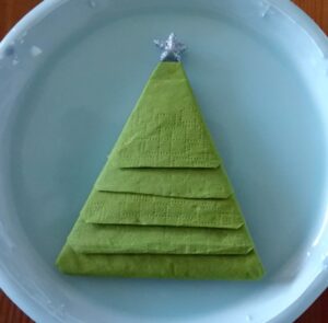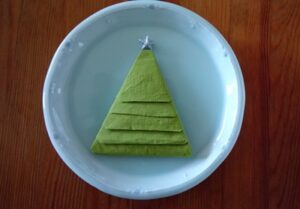 クリスマスのテーブルコーディネート用かわいいクリスマスツリーのナプキンの折り方