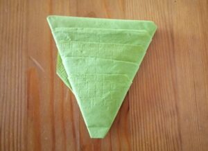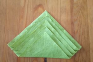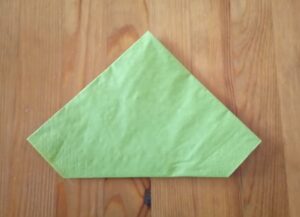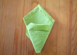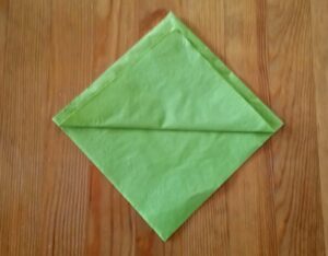 正方形のナプキンを半分に折ります。そのまた半分に折ります。