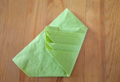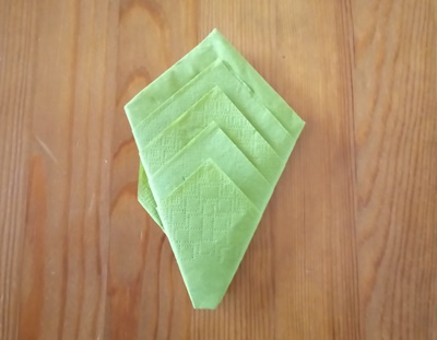 正方形のナプキンを半分に折ります。そのまた半分に折ります。
