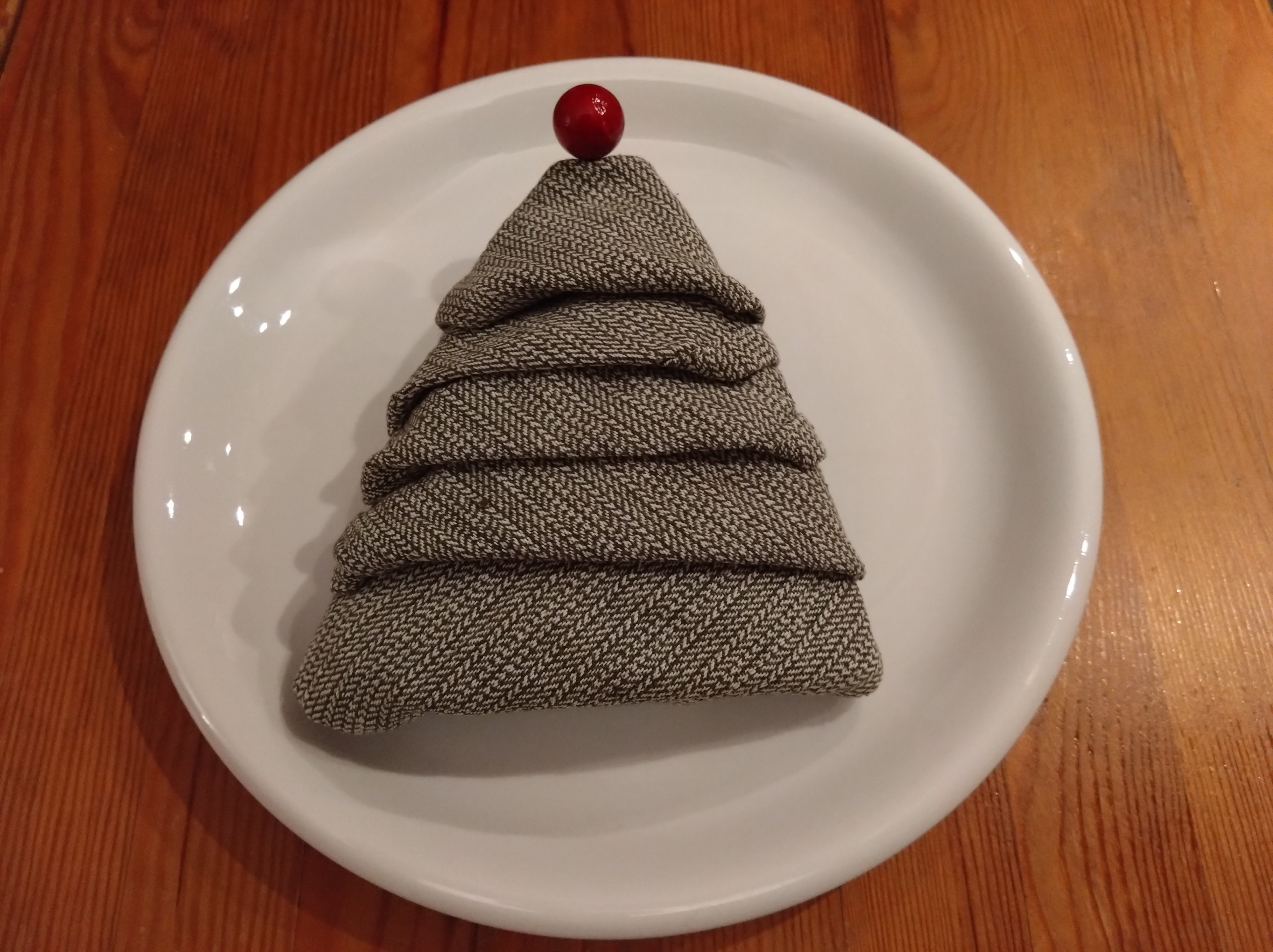 クリスマスのテーブルコーディネート用かわいいクリスマスツリーのナプキンの折り方