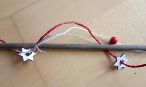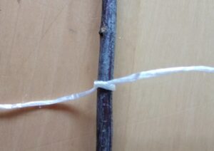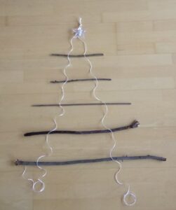 子供にもできますが、枝のバランスを取りながら紐をかけていくところは、大人が手伝ったほうが良いと思います。