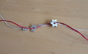 クリスマス用の飾りでこんなものがありました。ひもに星やビーズが通してあるものです。