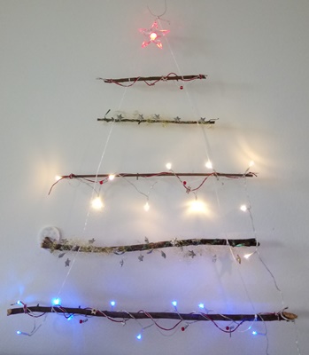 手作り壁掛けクリスマスツリー 電飾を付けると華やかにクリスマスっぽく!