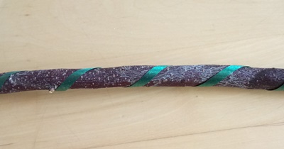 クリスマスカラーのひとつ、緑色のリボンを枝に巻き付けました。