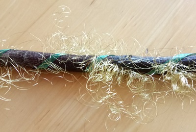 その上から、金色の巻き毛のような(「天使の髪」などの名前で売っている)キラキラを巻きつけました。