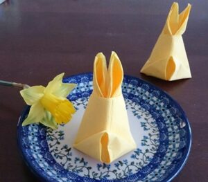 紙ナプキンでウサギを折って、パーティーのテーブルをかわいく飾りましょう。